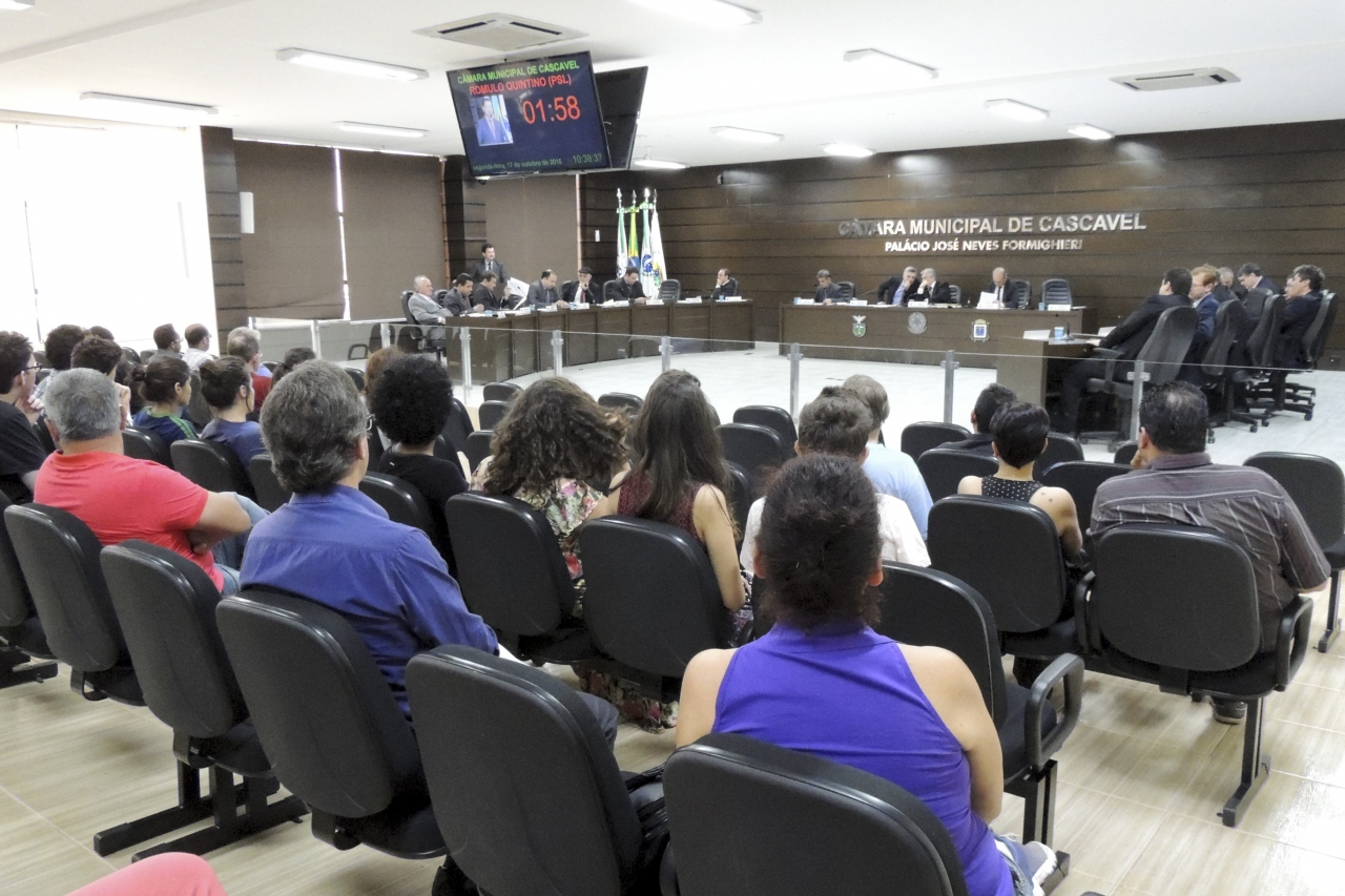 Os vereadores decidiram adiar por oito sessões nesta segunda-feira (17) a Moção 08/2016 que expressa apoio e solidariedade aos estudantes secundaristas mobilizados em Cascavel e em todo Paraná. O documento foi assinado pelos vereadores Paulo Porto (PCdoB), Professor Paulino (PT), Celso Dal Molin (PR), Ganso sem Limites (PSD), Walmir Severgnini (PSD), Gugu Bueno (PR), Jaime Vasatta (PTN), João Paulo (PSD), Vanderlei do Conselho (PSC), Paulino Pereira (PT) e Jorge Bocasanta (PROS).