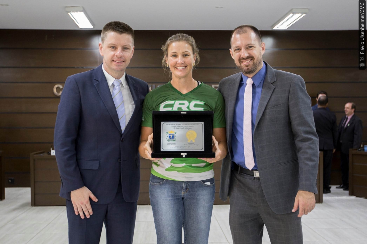 Aconteceu nesta terça-feira (13) a cerimônia de entrega da Medalha “Osmar Xiquinho Zimmermann” para a esportista Cascavelense Ana Paula Vergutz, proposta pelos vereadores Fernando Hallberg e Pedro Sampaio.