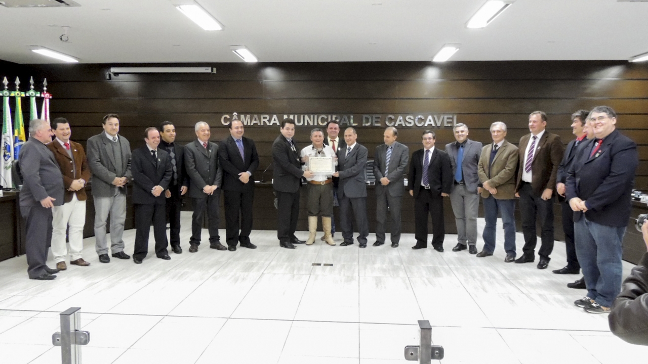 Os vereadores entregaram na sessão da última terça-feira (16), uma homenagem ao apresentador Hemerson Ribeiro Carlin, conhecido como Teixerinha. Os votos de louvor e congratulações foram propostos pelo vereador Luiz Burgarelli (PDT), em reconhecimento aos serviços prestados ao município através da disseminação e resgate da cultura gaúcha.