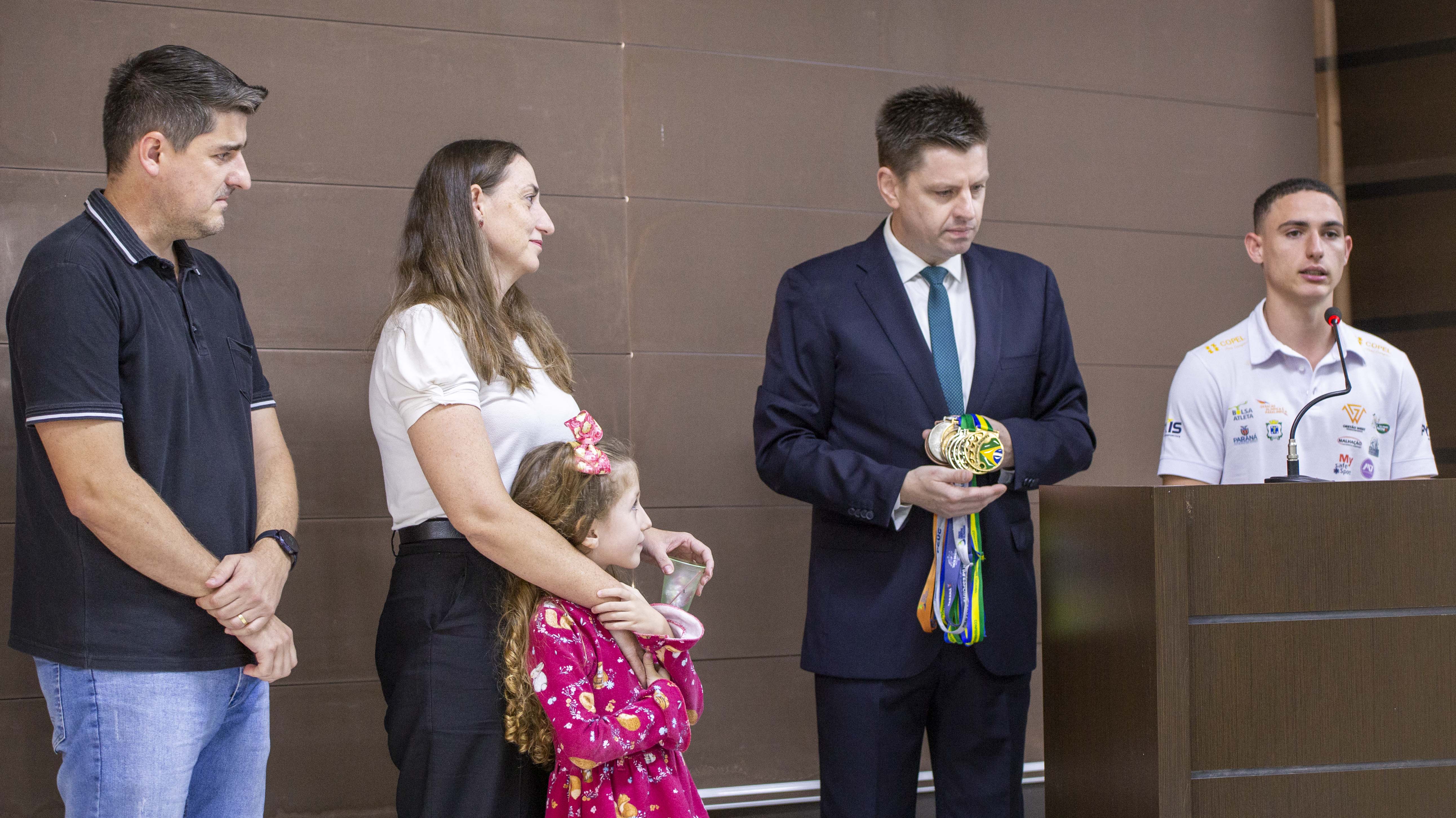 Por iniciativa do vereador Pedro Sampaio (PP), o atleta Arthur Joner Gobbi recebeu nesta terça-feira (10), a medalha Oscar Xiquinho Zimermann, em reconhecimento por sua brilhante trajetória no esporte e por representar Cascavel no cenário brasileiro e mundial. “Esta medalha é a maior condecoração que o município tem para reconhecer seus atletas e agradecer por seu desempenho, esforço e por inspirar novas gerações”, afirmou o vereador.