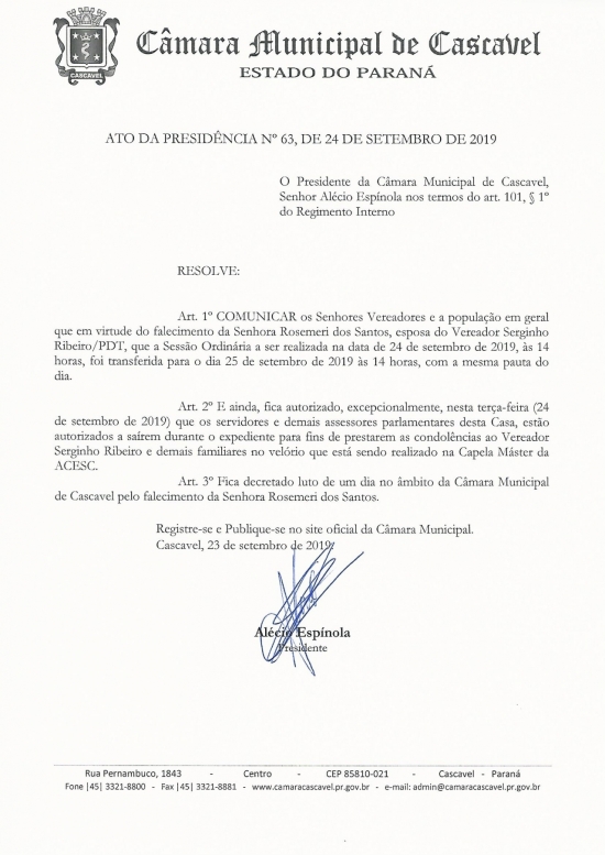 • Ato da Presidência nº 63, de 24 de setembro de 2019