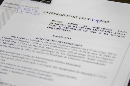 Os vereadores têm até 23 de outubro para protocolar emendas à Lei de Diretrizes Orçamentárias de 2016. O Anteprojeto 114/2015, que define a LDO, tem como objetivo traçar as prioridades na execução do orçamento para o próximo ano. Nesta lei, basicamente, devem estar previstos de forma atualizada as receitas e despesas e os projetos e atividades traçados anteriormente no PPA.