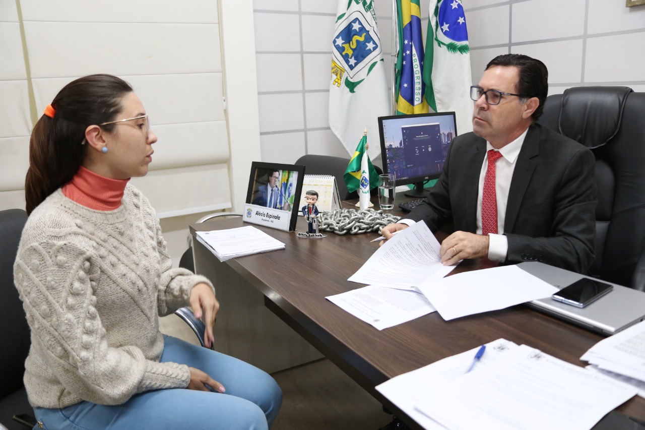 O presidente da Câmara de Cascavel, Alécio Espínola (PSC) e a coordenadora da Escola do Legislativo, Francielle Cordeiro, assinaram nesta terça-feira (06) o acordo de cooperação técnico-didática entre as Escolas do Legislativo das duas Casas.