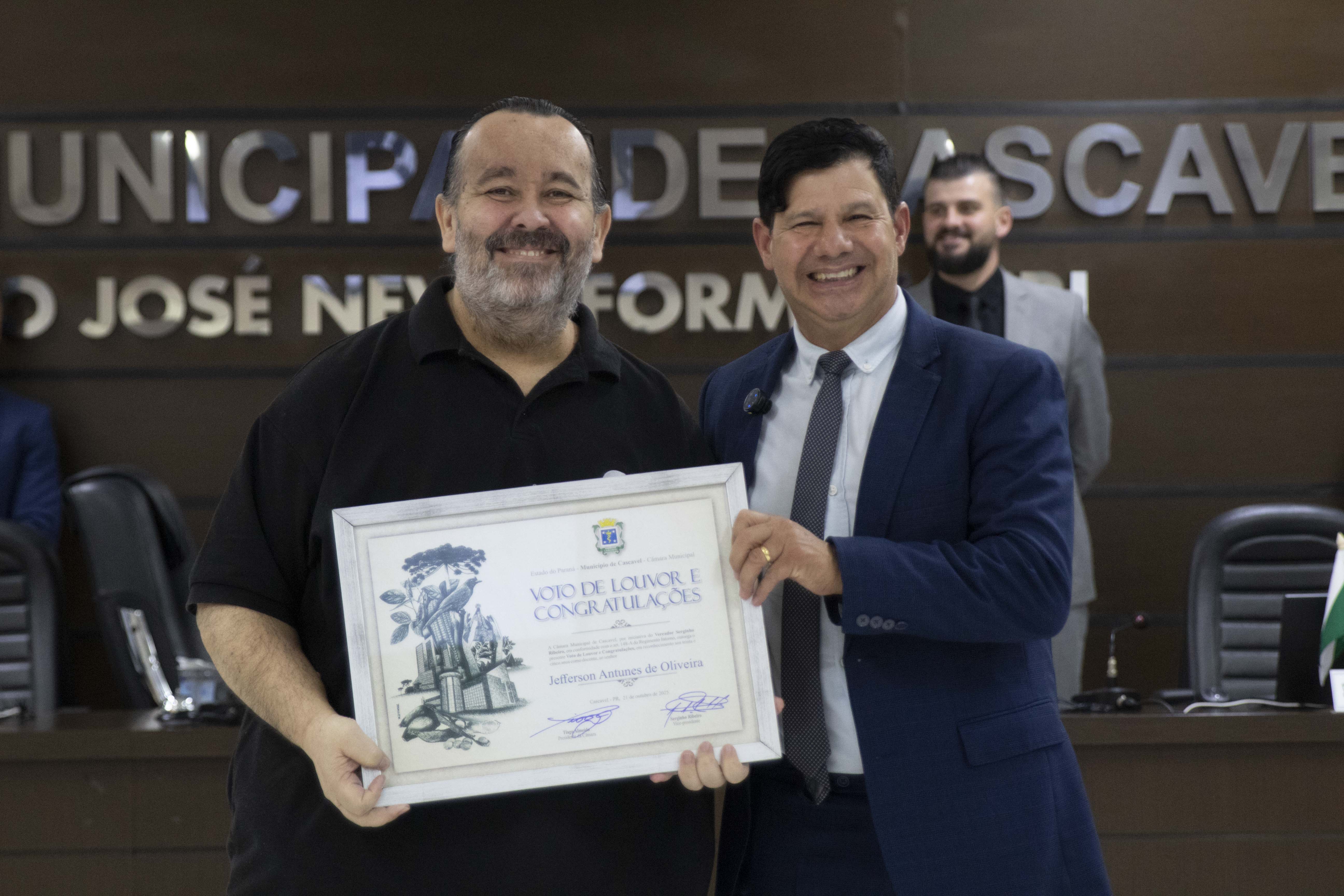 O professor Jefferson Antunes de Oliveira, conhecido carinhosamente como Chuchu, recebeu a homenagem do vereador Serginho Ribeiro. Com 35 anos de carreira, Jefferson é diretor do Curso e Colégio Alfa e é amplamente respeitado por sua dedicação e excelência no ensino.