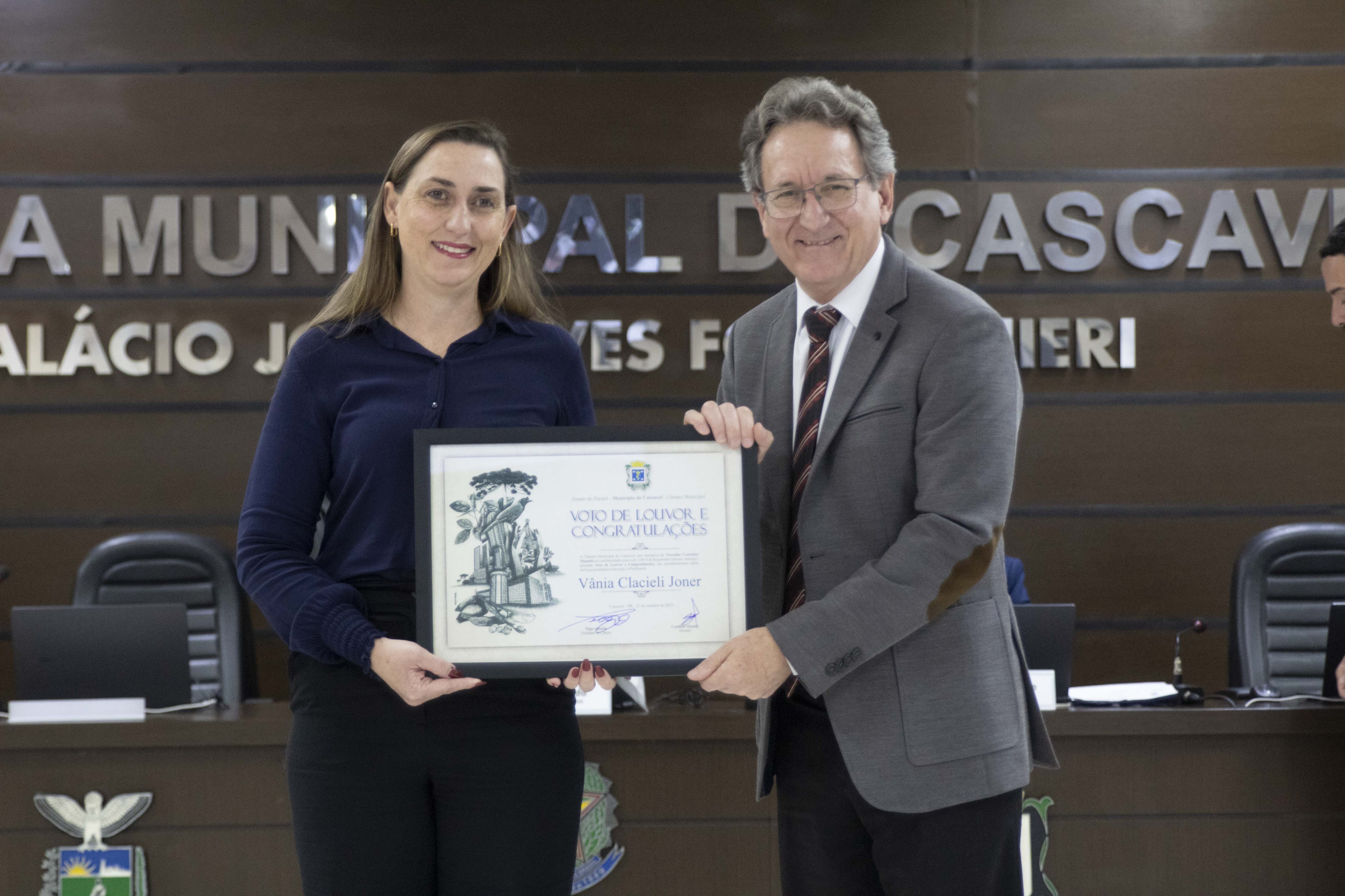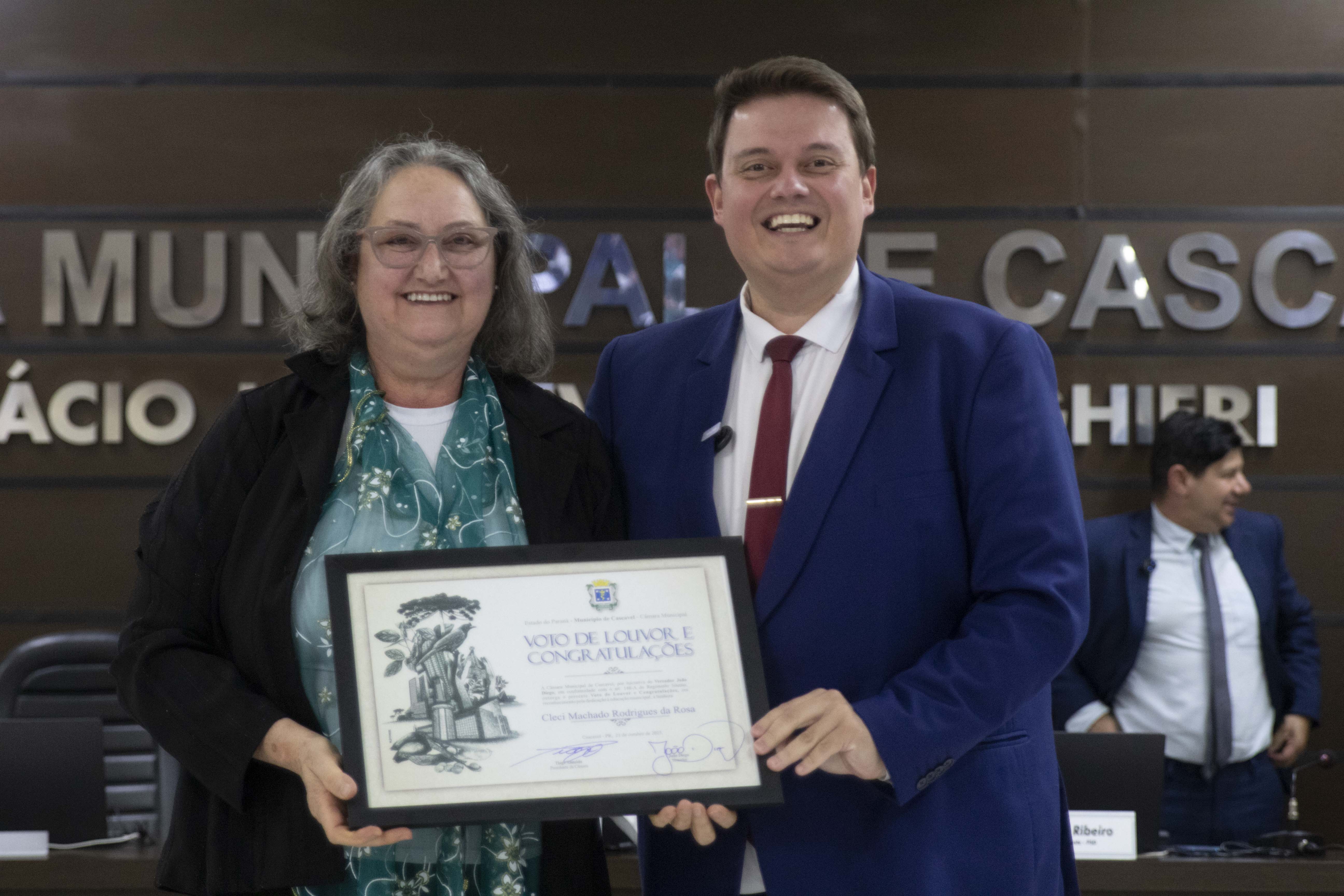 O vereador Dr. Lauri homenageou a professora Ignez Sandi, profissional que acompanhou sua alfabetização na infância. Também recebeu reconhecimento o chefe do Núcleo Regional de Educação, Rosimar Baú. Graduado em filosofia, psicologia, história e teologia, ele já atuou como diretor do Colégio Estadual Júlia Wanderley e também do CEEP em Cascavel. Tem 38 anos de atividades no magistério, sendo 25 na gestão escolar, dos quais 20 na rede pública.
