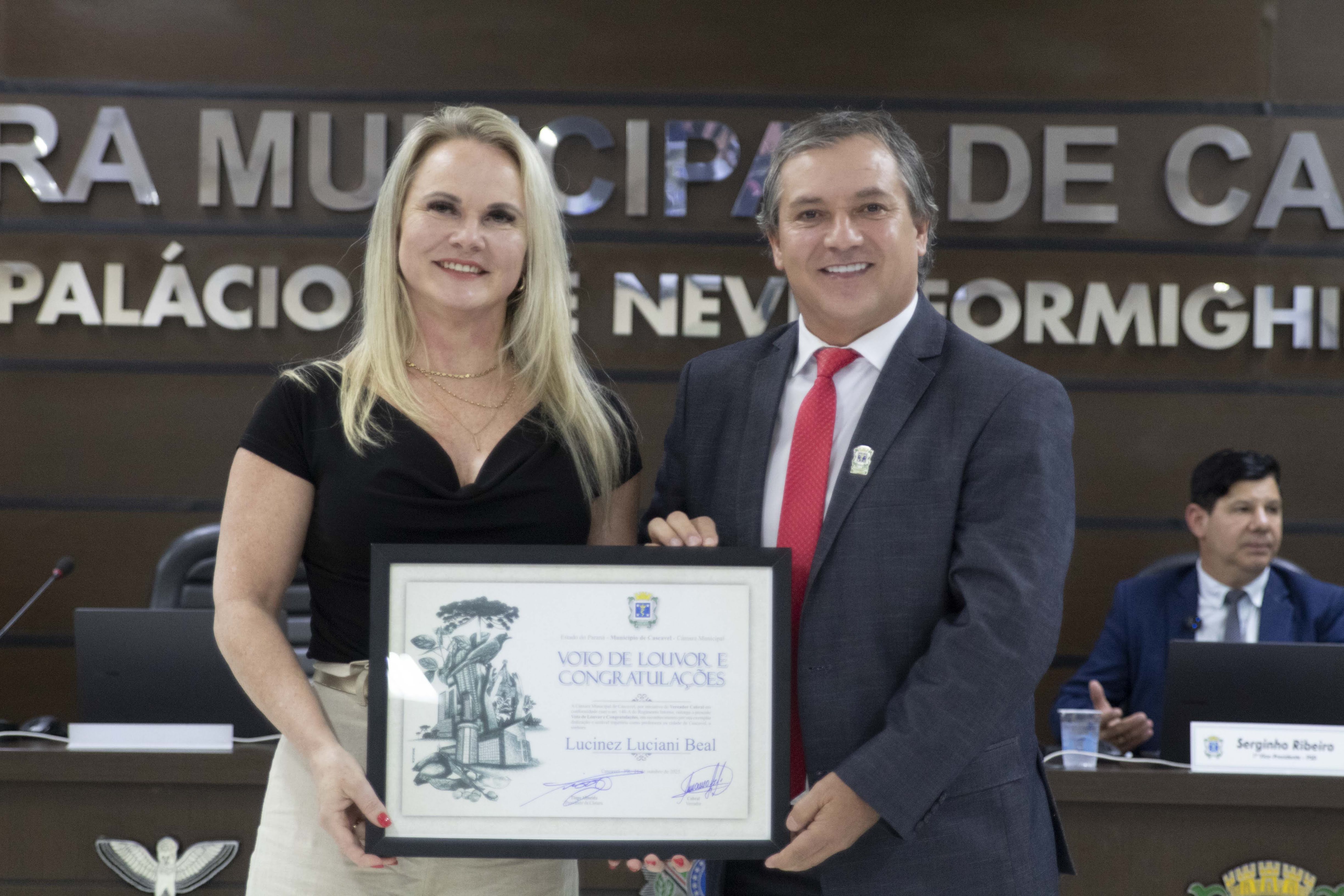 Por proposição do vereador Cabral, a senhora Lucinez Luciani Beal foi agraciada pela Câmara. Com 25 anos de magistério, Lucinez atua desde 2017 na Escola Municipal José Henrique Teixeira, onde segue encantando gerações com entusiasmo e comprometimento.