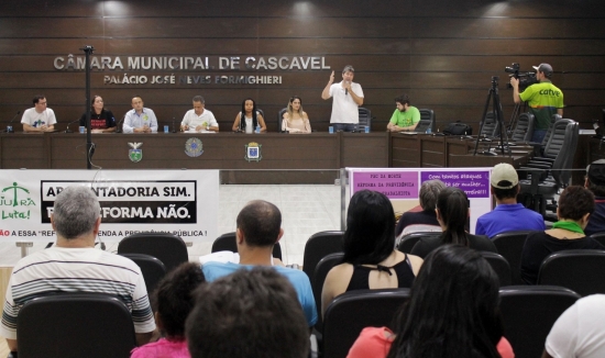 A Câmara Municipal de Cascavel sediou na noite desta quarta-feira (29/3) uma audiência pública sobre a reforma da Previdência que contou com uma explanação do advogado Ramon Bentivenha, especialista em Direito Constitucional. O vereador Paulo Porto (PCdoB) foi anfitrião do evento, que também contou com a presença do vereador Olavo dos Santos (PHS).