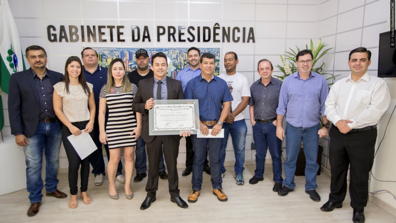Foi entregue nesta sexta-feira (18), no Gabinete da Presidência, a Moção de Aplausos a integrantes do Departamento Penitenciário do Paraná (Depen). De autoria do Policial Madril (PMB), com assinaturas de apoio de mais nove vereadores, a homenagem é dirigida a Thiago da Costa Correia, Wilson Domaneschi Junior, Álvaro Marcelo Alegrette, Edmir Lúcio da Rosa, Kerin Costa Monteiro, Mariana Leite Almeida, Rafael Padilha Marcante, componentes da Coordenação Regional, bem como a Francisco Alberto Caricati, Diretor Geral do DEPEN e a Thorstein Ferraz, Vice-Diretor.