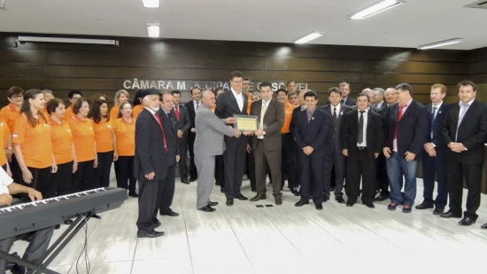 “Nosso coral é composto de pessoas comuns, que têm diferentes profissões, mas que se esforçam muito neste trabalho. Nos pautamos sempre pela valorização da cultura”, afirmou Nelson Engelmann, na tribuna.