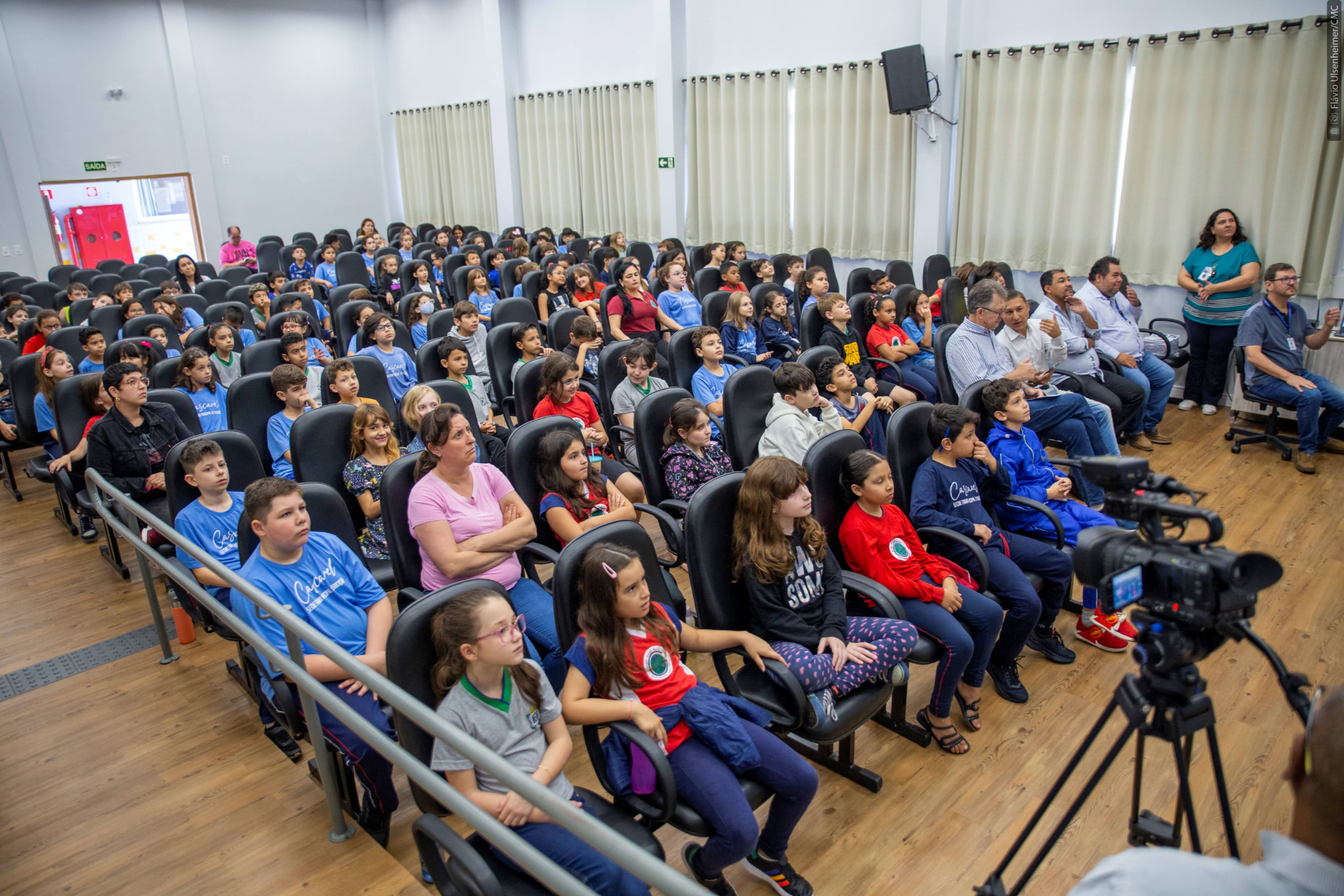 Em evento na manhã desta sexta-feira (06) na Escola Municipal Gladis Maria Tibola, a Câmara Municipal lançou um folheto didático dirigido a alunos do Ensino Fundamental, que explica a importância e o funcionamento do Poder Legislativo. O encontro foi coordenado pela Escola do Legislativo e contou com a participação dos vereadores Sadi Kisiel (Podemos), Cidão da Telepar (PSB) e Joceh da Autoescola (MDB).