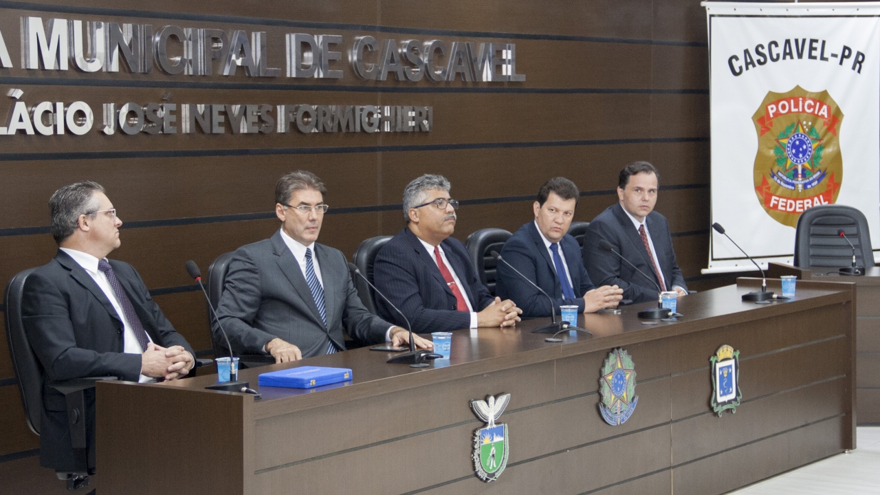 A transferência da chefia da Polícia Federal de Cascavel aconteceu nesta quarta-feira (19), no plenário da Câmara de Cascavel. Marco Berzoini Smith é o novo delegado-chefe da Polícia Federal de Cascavel, substituindo Celso Rogério Mochi.