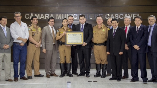 Com o plenário da Câmara lotado, o Capitão da Polícia Rodoviária Estadual, Roberto Tatibana recebeu nesta terça-feira (15), votos de louvor e congratulações por suas atividades desempenhadas em favor da população de Cascavel e região.