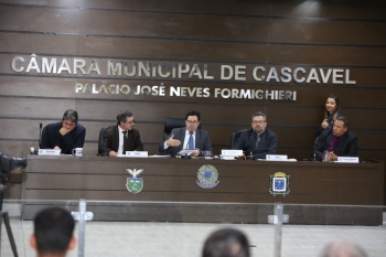 Os vereadores da Comissão de Segurança Pública e Trânsito da Câmara, Fernando Hallberg, Policial Madril e Pedro Sampaio, organizaram uma audiência pública nesta quarta-feira (10) para discutir o Projeto de Lei 57/2019 que prevê a extinção e liquidação da