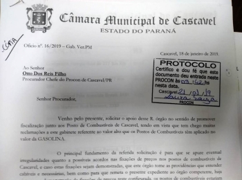 Foi protocolada na Câmara nesta quinta-feira (24) a Indicação 21/2019, de autoria do vereador Policial Madril (PMB). A matéria pede que a Cettrans (Companhia de Engenharia de Transporte e Trânsito) realize estudos técnicos para implantação de faixas de pe