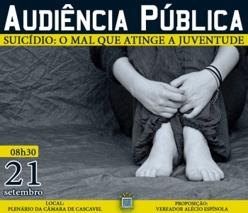 O vereador Alécio Espínola (PSC) realiza amanhã, sexta-feira (21), a partir das 8h30, uma audiência pública para debater com especialistas, entidades de classe, universidades e demais instituições de ensino e poder público, políticas públicas para prevenç