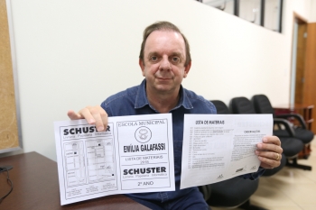 Após receber a denúncia de três pais da Escola Municipal Emília Galafassi, no bairro Parque São Paulo, o vereador Celso Dal Molin (PR) foi até a escola e confirmou: a lista de materiais escolares entregue aos pais continha não apenas o nome de uma grande