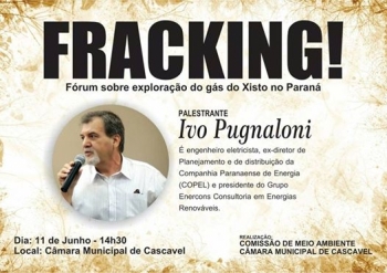 Na próxima quarta-feira (11) às 14h30, a Comissão de Agricultura e Defesa do Meio Ambiente da Câmara de Cascavel convida a todos para o Fórum de discussão sobre fracking na exploração de gás de xisto no Paraná. A Comissão convidou todos os setores relacio
