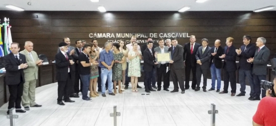 Foi entregue nesta quarta-feira (28) o título de Honra ao Mérito ao jornalista cascavelense Clóvis Grelak. A homenagem foi proposta através do Projeto de Decreto Legislativo 9/2016, de autoria do vereador Robertinho Magalhães. A honraria reconhece a importante participação e cobertura do profissional nos mais diversificados eventos automobilísticos, engrandecendo e elevando o nome da cidade de Cascavel.