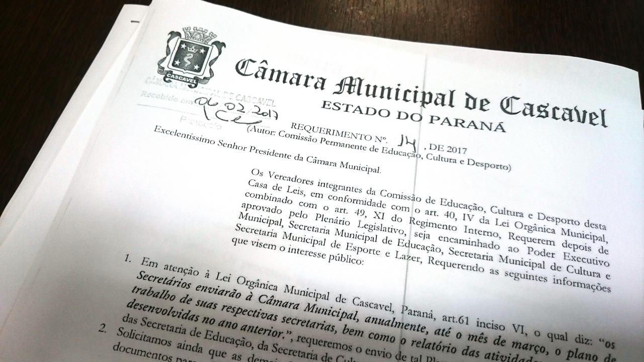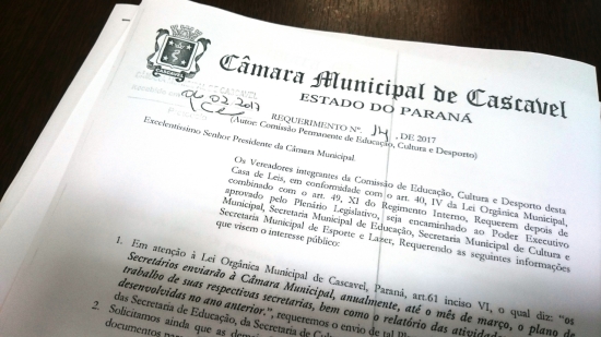 O documento pede ainda que as demais secretarias do Poder Executivo façam o devido envio de tais documentos para a Câmara Municipal de Cascavel.