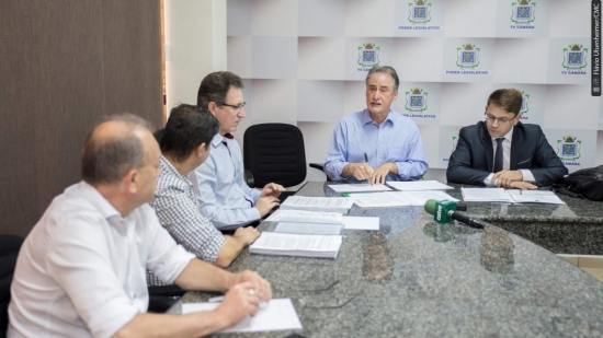 A Comissão de Economia da Câmara se reuniu nesta sexta-feira (06) com o ex-prefeito Edgar Bueno e sua assessoria jurídica para discutir o parecer prévio do Tribunal de Contas do Paraná (TCE) que recomenda a aprovação com ressalvas das contas relativas ao exercício financeiro de 2015, sob responsabilidade de Edgar Bueno. A comissão é formada pelos vereadores Serginho Ribeiro (PPL), Mazutti (PSL) e Jaime Vasatta (PTN). Estiveram presentes ainda na reunião os vereadores Parra (PMDB) e Fernando Hallberg (PPL).