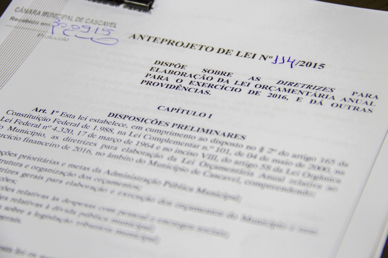 Os vereadores têm de 06 a 23 de outubro para protocolar emendas à Lei de Diretrizes Orçamentárias de 2016. Toda mudança proposta pelos legisladores deve estar em consonância com o Plano Plurianual e seguir as regras determinadas pela Lei de Responsabilidade Fiscal.
