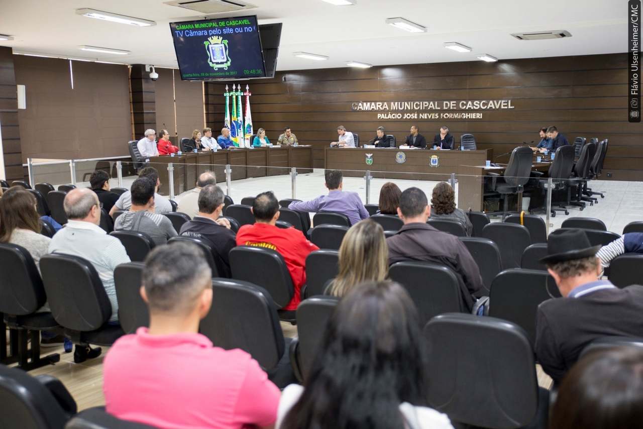 Aconteceu nesta terça-feira (08) na Câmara de Vereadores de Cascavel uma audiência pública solicitada pela Comissão de Segurança Pública e Trânsito do Legislativo para debater as regras de funcionamento das distribuidoras de bebidas no município. A Comissão de Segurança Pública e Trânsito do Legislativo da Câmara é formada pelos vereadores Policial Madril (PMB), Parra (PMDB) e Valdecir Alcântara (PSL).