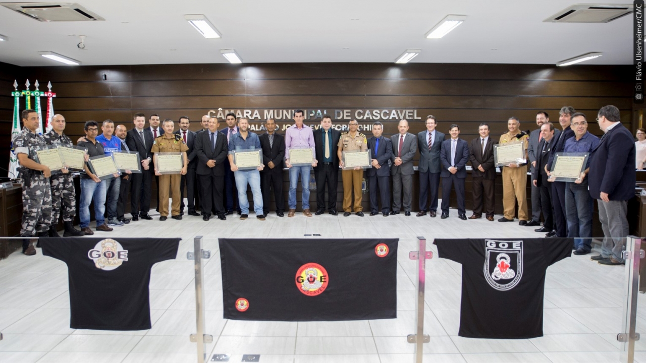 Por sua dedicação na fundação e manutenção do Grupo de Operações Especiais – GOE, dez policiais militares receberam votos de louvor e congratulações na Câmara nesta terça-feira (08).