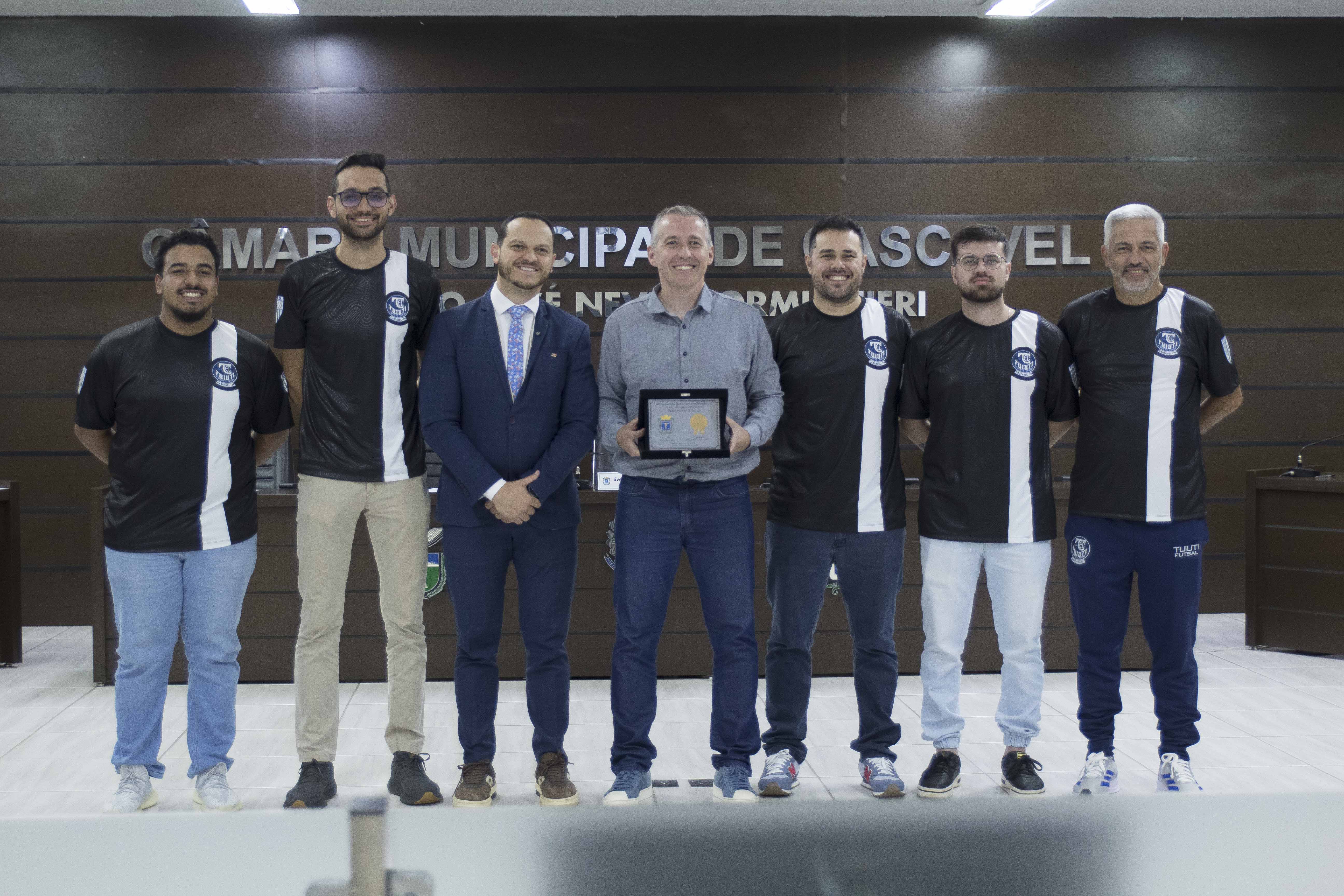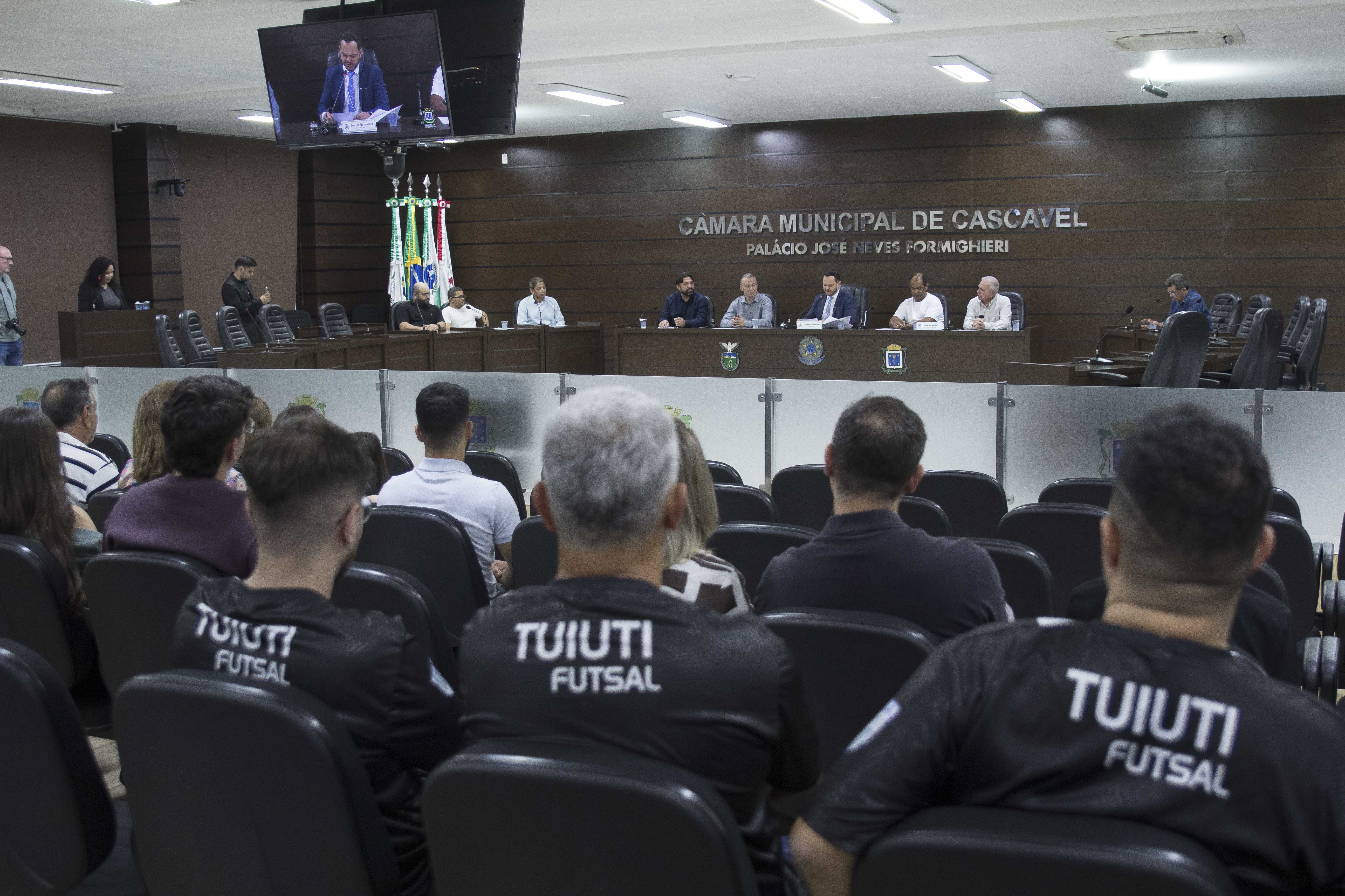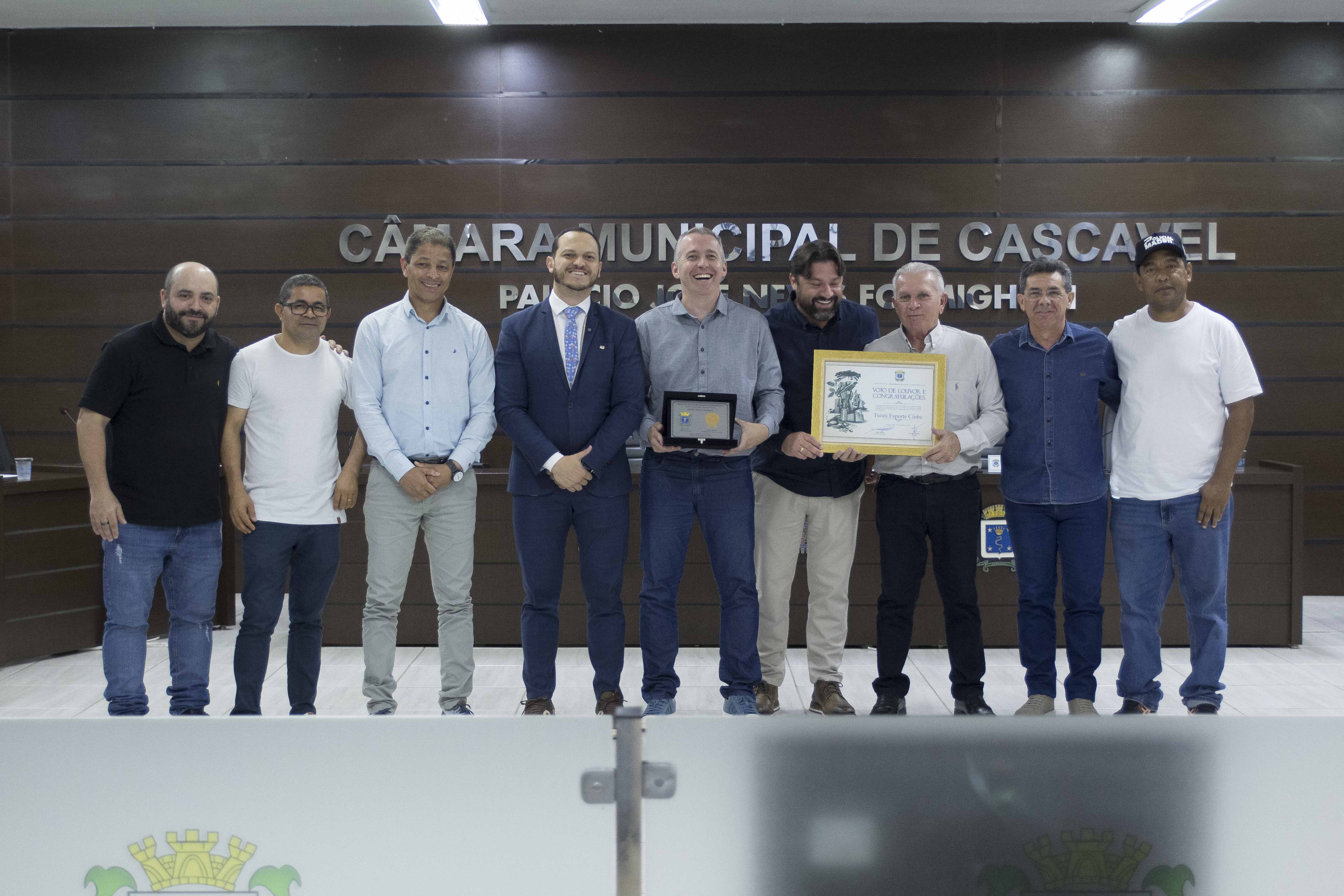Na sequência, outra homenagem do vereador Everton Guimarães foi a entrega do Voto de Louvor e Congratulações ao próprio Tuiuti Esporte Clube, pela passagem dos seus 76 anos de existência e sua contribuição para o lazer, o esporte e a convivência social em Cascavel.