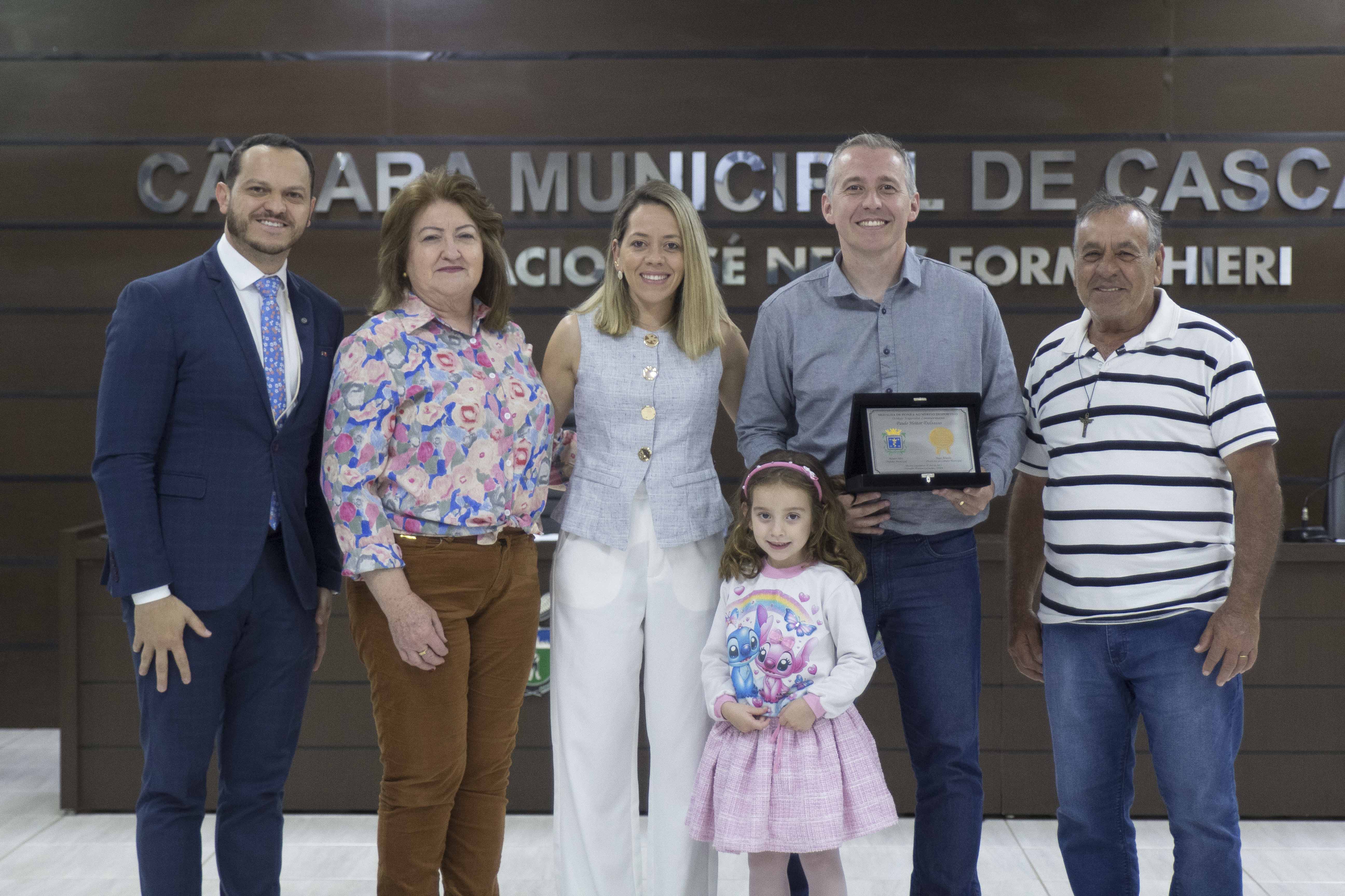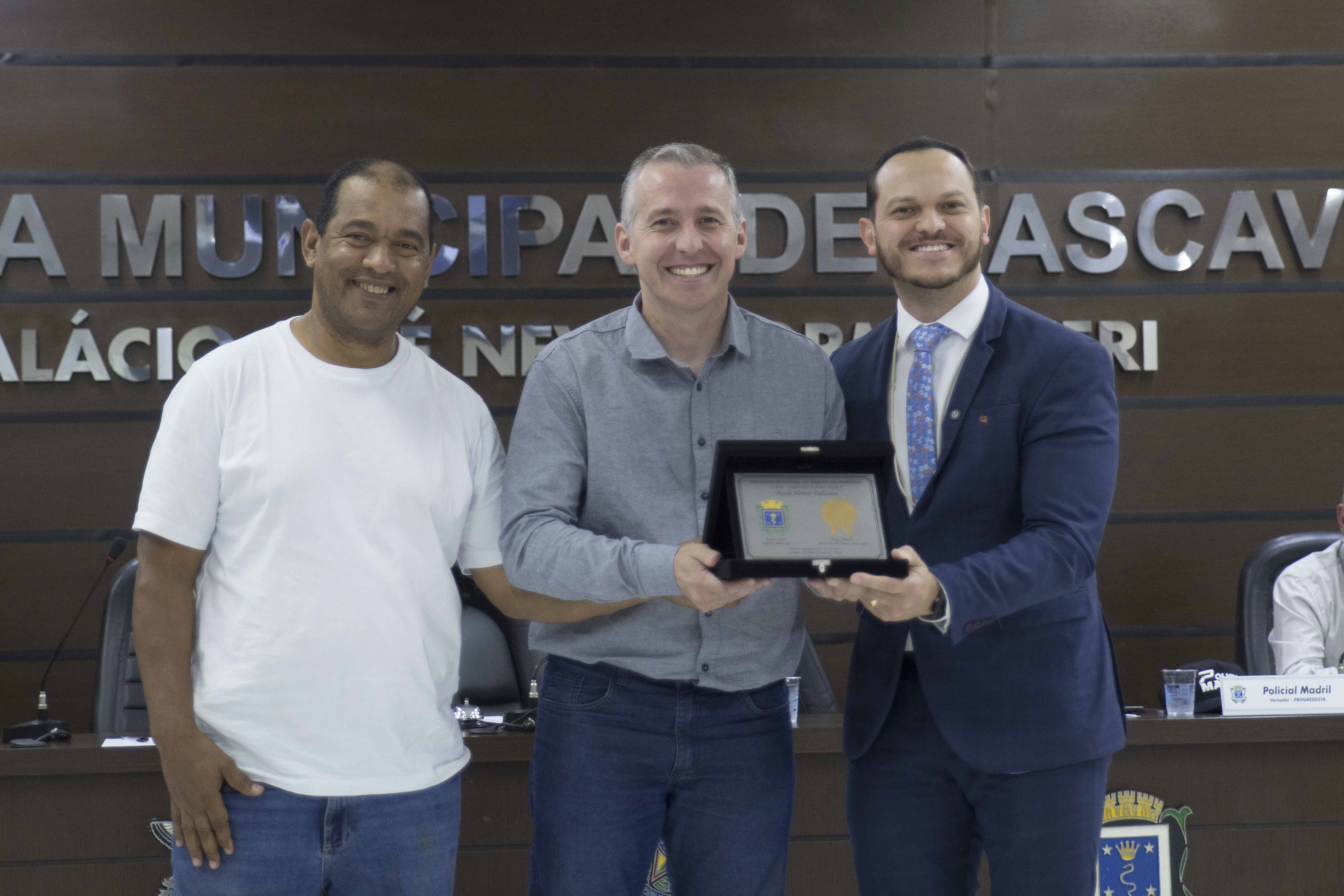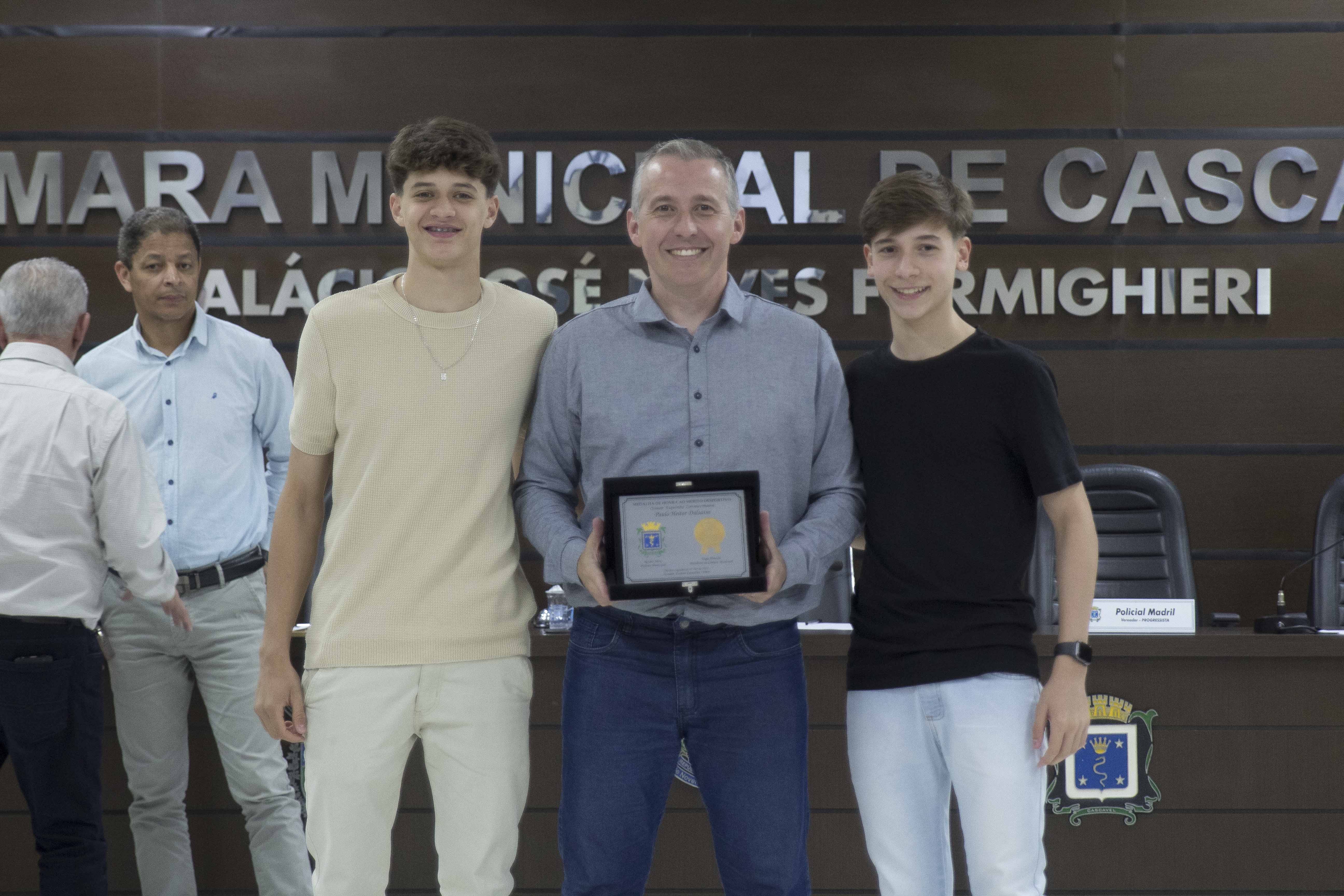 Em sessão solene na noite de terça-feira (21), a Câmara Municipal fez a entrega de um Voto de Louvor e Congratulações ao Clube Tuiuti e da Medalha do Mérito Esportivo “Osmar Xiquinho Zimmermann” ao técnico Paulo Dalsasso. O autor das duas homenagens é o vereador Everton Guimarães (PMB).