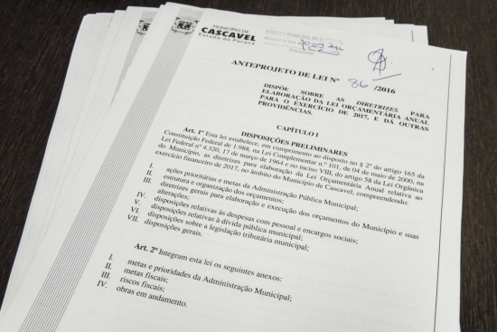 Foi protocolada na secretaria da Câmara na última sexta-feira, 30, a Lei de Diretrizes Orçamentárias para 2017. A LDO é uma previsão de gastos e receitas do ano, que se concretiza na Lei Orçamentária Anual (LOA). Como as metas foram definidas em médio prazo, a cada ano é preciso fazer a revisão destas estimativas, corrigindo as prioridades e estratégias.
