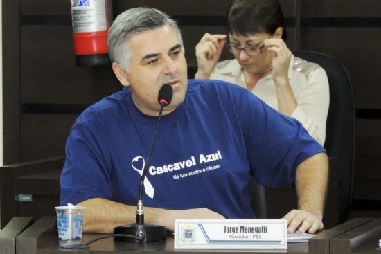 O vereador Jorge Menegatti quebrou o protocolo nesta segunda-feira (03), deixando de lado o uso do traje obrigatório durante a sessão (terno e gravata) e participou da sessão usando a camiseta do movimento Cascavel Azul, que realiza ações em favor da saúde do homem e prevenção do câncer.