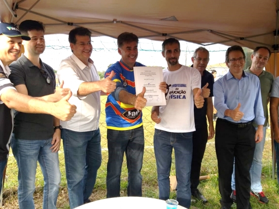 O último sábado (15) foi de dupla satisfação tanto para a comunidade da região norte, quanto para o vereador Carlinhos Oliveira (PSC). Na tarde em que aconteceu a assinatura da ordem de serviço no valor de R$ 1,475 milhão, destinado à primeira etapa da infraestrutura do futuro Centro Esportivo Norte, o representante do deputado federal Hermes “Frangão” Parcianello (MDB), Walter Parcianello, anunciou uma nova emenda parlamentar, desta vez de R$ 3,5 milhões, para a obra do ginásio que fará parte do complexo esportivo.
