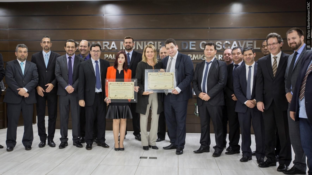A Câmara entregou nesta terça-feira (12) votos de louvor e congratulações à delegada Raissa de Vargas Scariot e à apresentadora Olga Bongiovanni, pela condução do projeto "Contra o assédio Sexual, Faça Escândalo. Grite", que promove a conscientização sobre a importância de denunciar o assédio através da imprensa e também no transporte público.