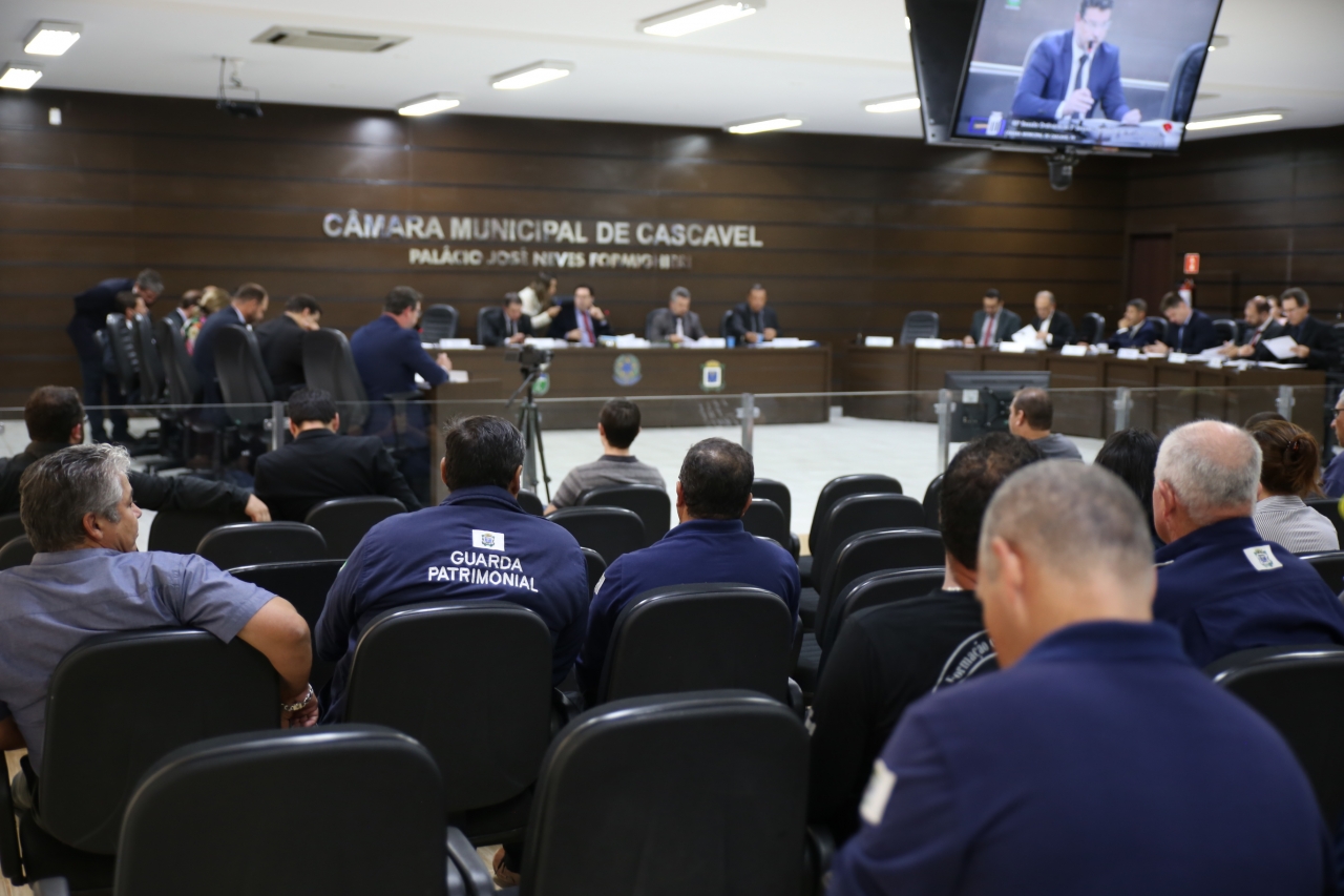Na sessão desta segunda-feira (16), os vereadores aprovaram o Projeto de Lei 155/2019, que dispõe sobre alterações na estrutura dos cargos efetivos de Guarda Patrimonial e Guarda Municipal dispostos no plano de cargos, vencimentos e carreira dos Servidor Público Municipal, regido pela Lei Municipal nº 3.800/2004.