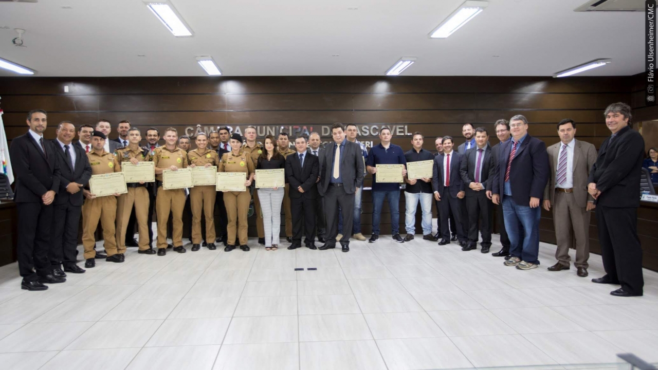 A proposição foi apresentada pelo vereador Aldonir Cabral (PDT). Os policiais homenageados figuram entre os que mais fizeram apreensões e prisões no Estado do Paraná ou participaram da operação que resultou na maior apreensão de drogas em nossa cidade, quando foram encontrados 993 quilos que maconha em uma residência no perímetro urbano de Cascavel.