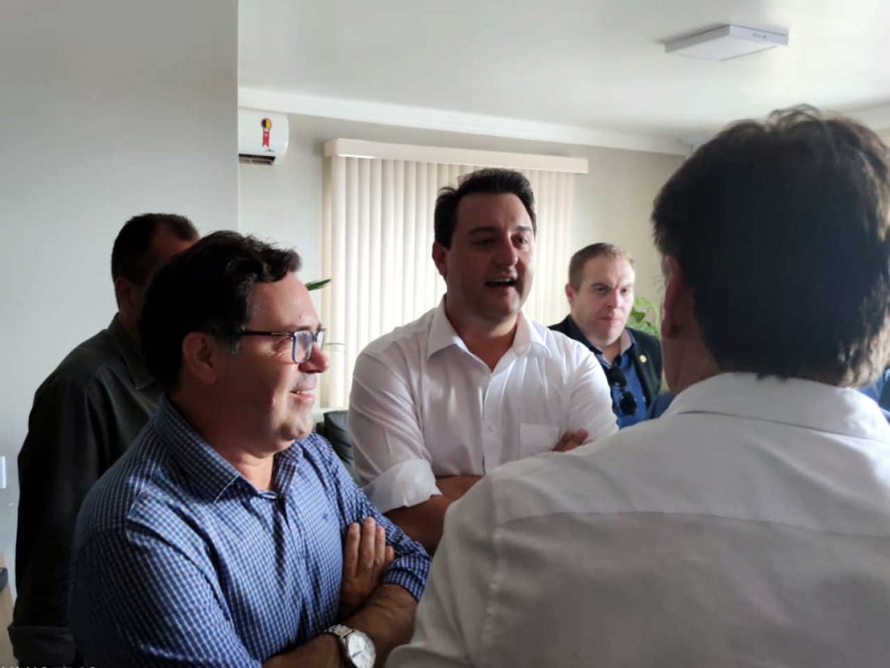 O presidente da Câmara Municipal, vereador Alécio Espínola (PSC), junto com o prefeito Leonaldo Paranhos (PSC), esteve na tarde desta quarta-feira (05) no aeroporto de Cascavel para recepcionar o governador Ratinho Júnior (PSC). Os chefes dos poderes Legislativo e Executivo do município acompanharam o governador em sua visita ao Show Rural.
