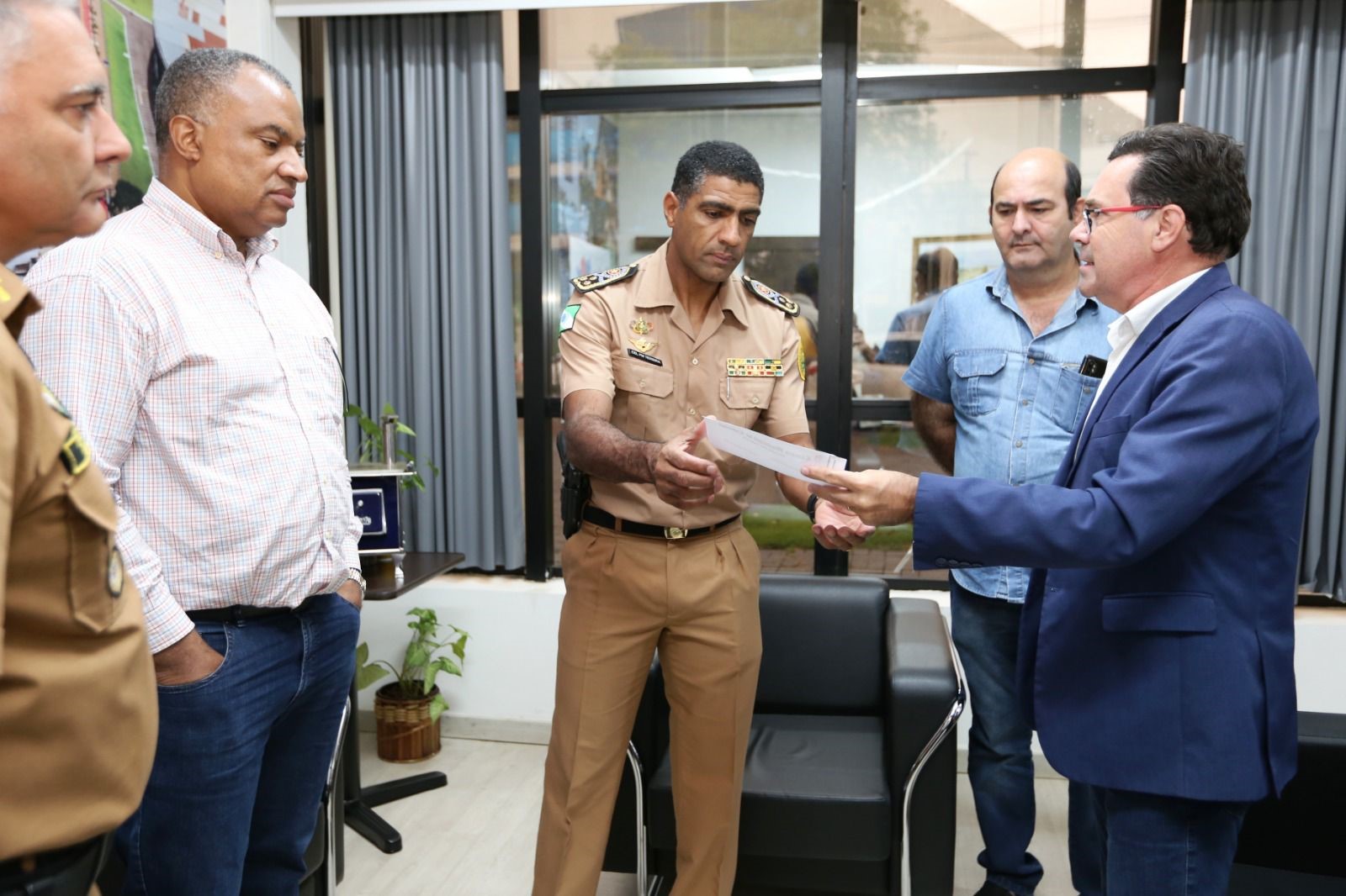 Durante o encontro o presidente Alécio, acompanhado dos vereadores Cidão da Telepar (PSB), Josué de Souza (MDB) e Policial Madril (PSC), entregou um ofício ao comandante sobre a falta de efetivo e viaturas nas Unidades Paraná Seguro dos bairros Santa Cruz, Interlagos e Universitário.