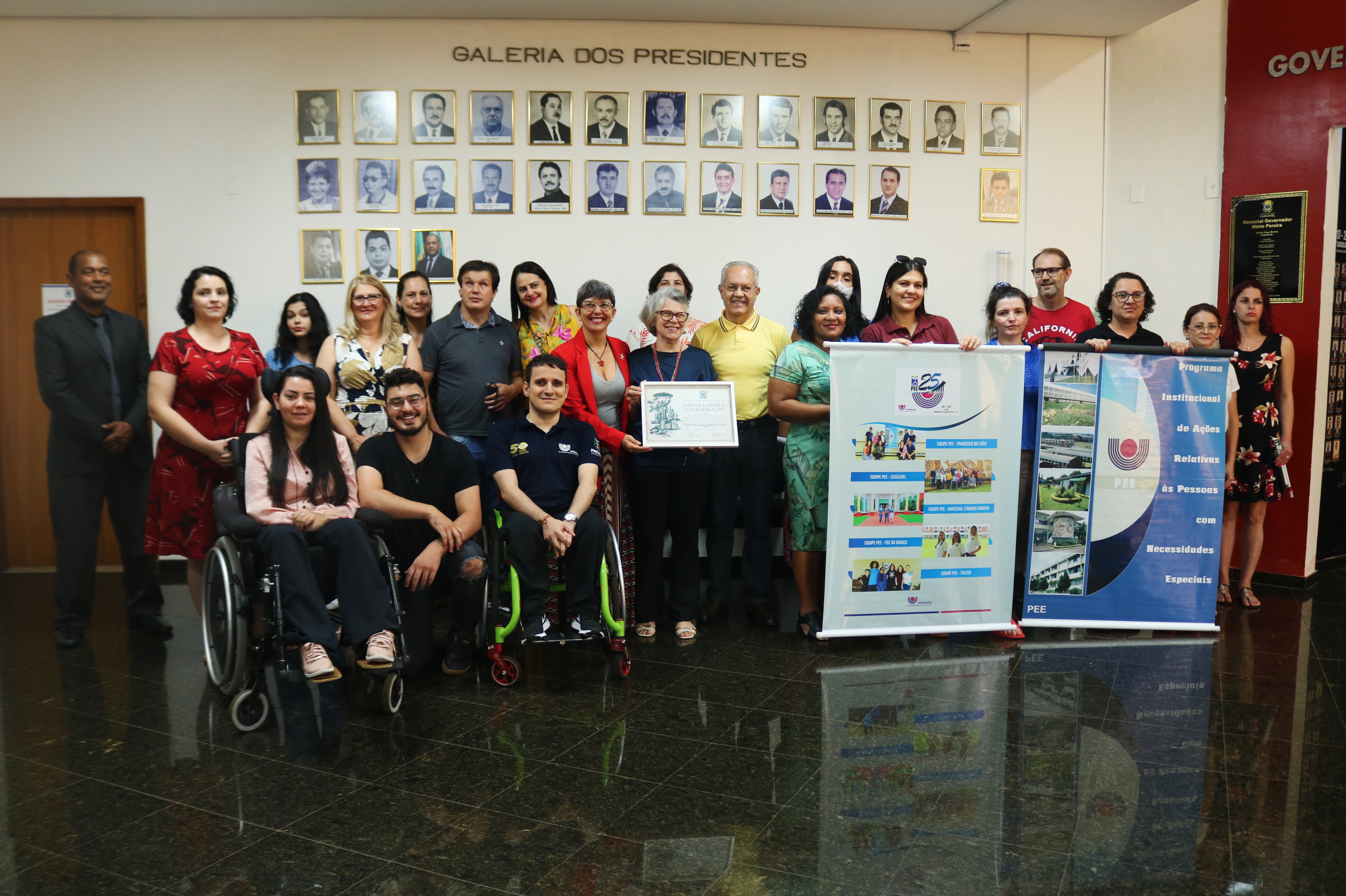 O Programa Institucional de Ações Relativas às Pessoas com Necessidades Especiais (PEE) da Universidade Estadual do Oeste do Paraná (Unioeste) foi homenageado em sessão solene nesta terça-feira (20), na Câmara de Cascavel, com o recebimento de um Voto de Louvor e Congratulações. A placa, com homenagem oficializada pelo Requerimento nº 283/2022, foi entregue pela autora da proposta, a vereadora Professora Liliam (PT).