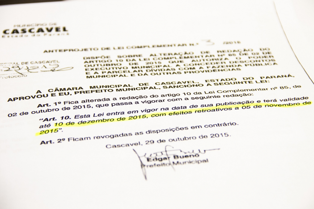 Válida até dia 05 de novembro, a Lei Complementar que autoriza o município a conceder descontos e parcelar dívidas com a Fazenda Pública Municipal pode ser prorrogada até dezembro.