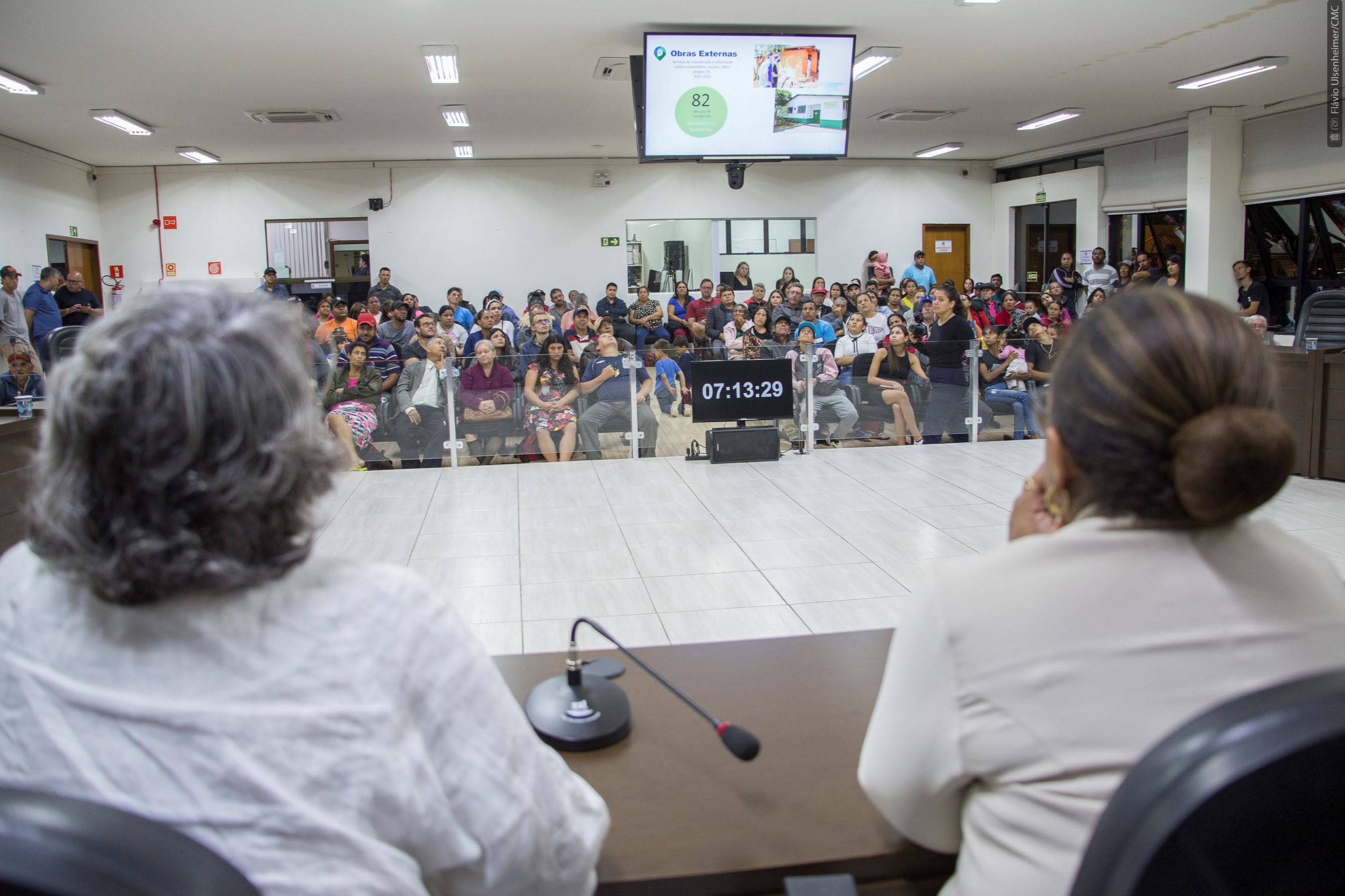 A regularização de áreas de invasão no município foi o tema principal da reunião pública sobre habitação realizada na noite da quarta-feira (24) no Plenário da Câmara Municipal. Proposta pelos vereadores Alécio Espínola (PSC), Dr. Lauri (PROS), Edson Souza (MDB), Melo do Pastel (Progressistas) e pelas vereadoras Professora Liliam (PT) e Professora Beth Leal (Republicanos), a reunião trouxe ao Legislativo uma grande quantidade de pessoas, que ocuparam todo o Plenário e parte do saguão.
