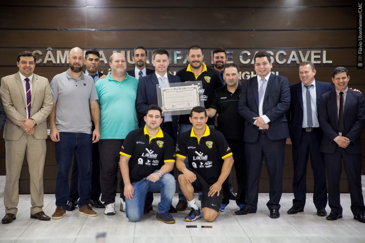 “Além de valorizar o expressivo resultado da conquista dessa valorosa equipe, nossa homenagem tem a intenção maior de reforçar os valores que os conduziram à vitória: esforço, dedicação e amor à cidade de Cascavel”, destacou o vereador Pedro Sampaio.