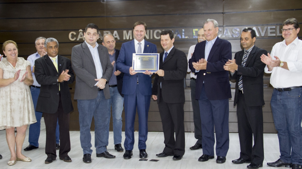 O senador, filho dos empresários cascavelenses Assis e Nair Gurgacz, recebeu a homenagem em razão de sua atuação no Congresso Nacional, especialmente no que diz respeito à não implantação da cobrança de taxas de licenciamento para tratores e outras máquinas agrícolas.