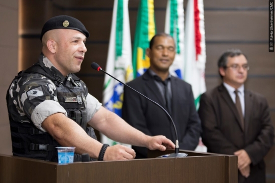 Foi entregue pela Câmara de Cascavel nesta terça-feira (19) Votos de Louvor e Congratulações ao Policial Militar Soldado Michel Augusto da Silva, em reconhecimento pelo seu ato de bravura pelo salvamento da vida de Daniele Soares. A homenagem foi proposta pelos vereadores Aldonir Cabral (PDT) e Policial Madril (PMB) através do Requerimento 477/2017.