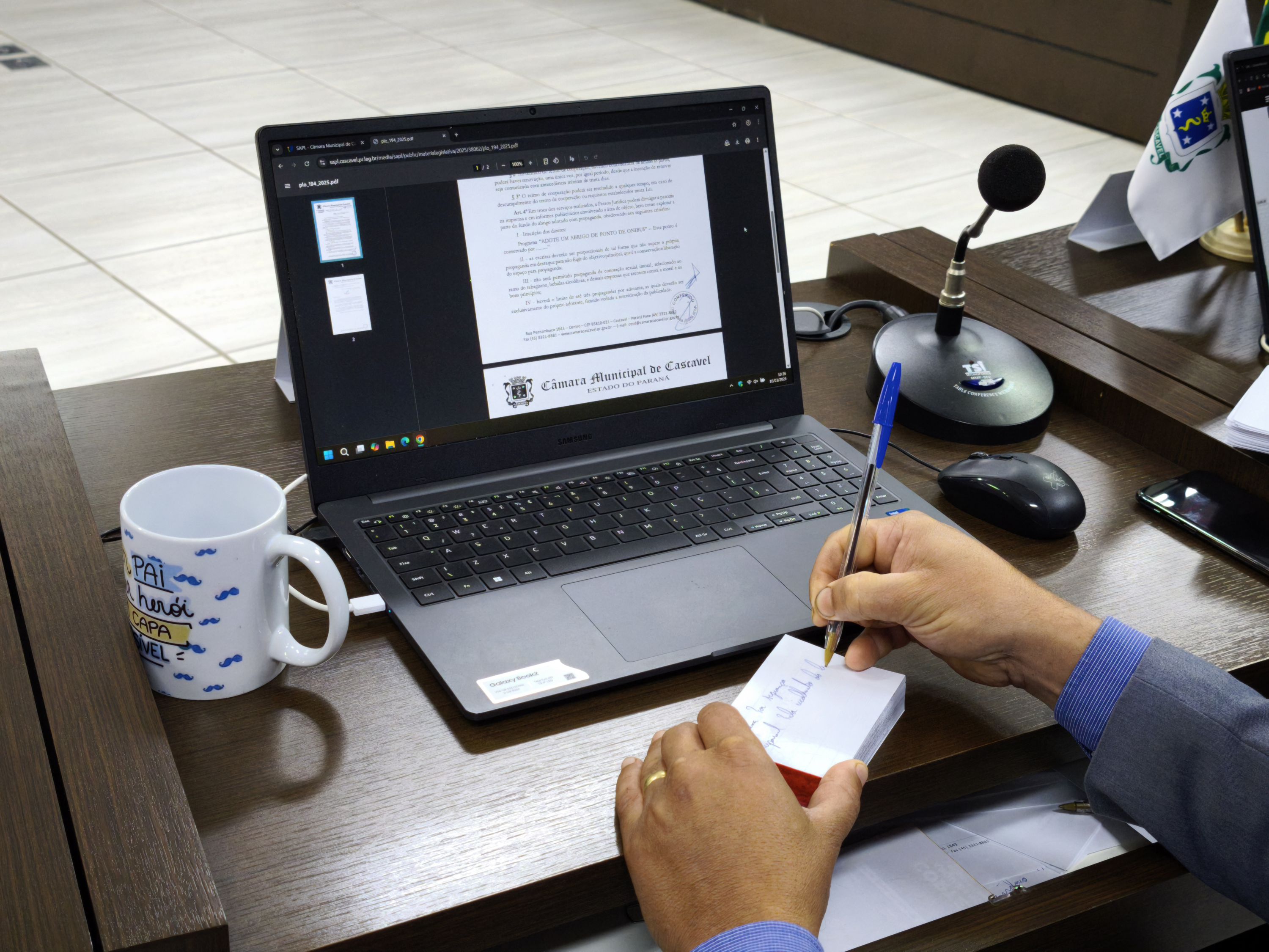 Ouviram as explicações os vereadores Romulo Quintino (PSL), Parra (MDB), Policial Madril (PMB), Mazutti (PSL), Pedro Sampaio (PSDB) e os componentes da Comissão de Justiça e Redação, vereadores Jaime Vasatta (PTN), Josué de Souza (PTC) e Rafael Brugnerotto (PSB). Brugnerotto foi autor do pedido de adiamento por três sessões, aprovado em 11 de fevereiro, quando a matéria foi ao Plenário para primeira discussão.