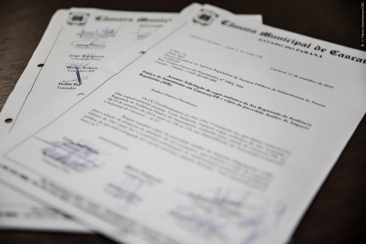 Através do Ofício nº 96/2019, os vereadores cascavelenses questionam a Agepar (Agência Reguladora do Paraná) a respeito da validade da audiência pública realizada neste mês para tratar de saneamento e ainda solicitam cópia da Análise de Impacto Regulatório que justifique a extinção da cota de consumo mínimo de água.