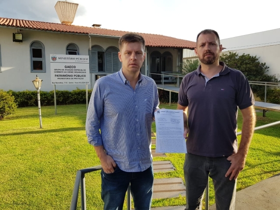 Os vereadores Fernando Hallberg (PPL) e Pedro Sampaio (PSDB) protocolaram nesta sexta-feira (29) o Ofício nº 219/2019 na 7ª Promotoria de Justiça – GAECO, solicitando que sejam apuradas as denúncias apresentadas pelo vereador Bocasanta durante discurso na tribuna na última quinta-feira (28), quando afirmou que outros legisladores desta Casa de Leis recebem parte do vencimento de seus assessores.