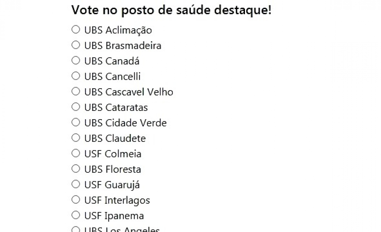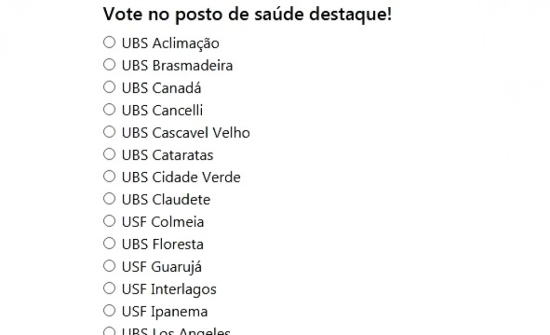 Para reconhecer o trabalho de excelência realizado nos postos de saúde de Cascavel, a Câmara disponibilizou em seu site uma votação que escolherá o Posto de Saúde Destaque, válido tanto para Unidades Básicas de Saúde quanto para Unidades de Saúde da Família.